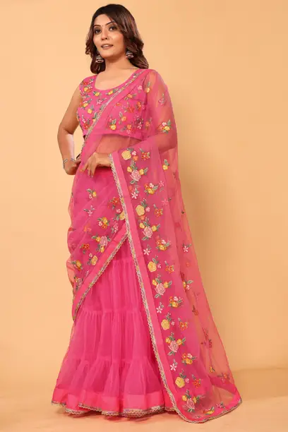 Embroidered Stitched Lehenga Choli (Pink)